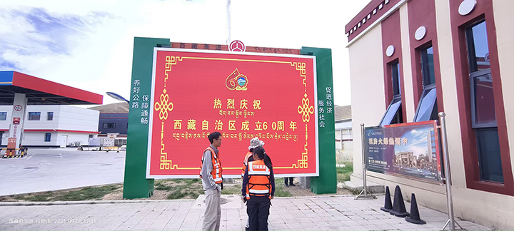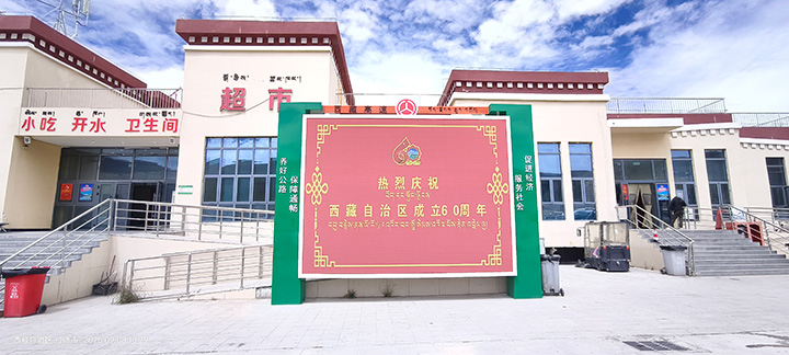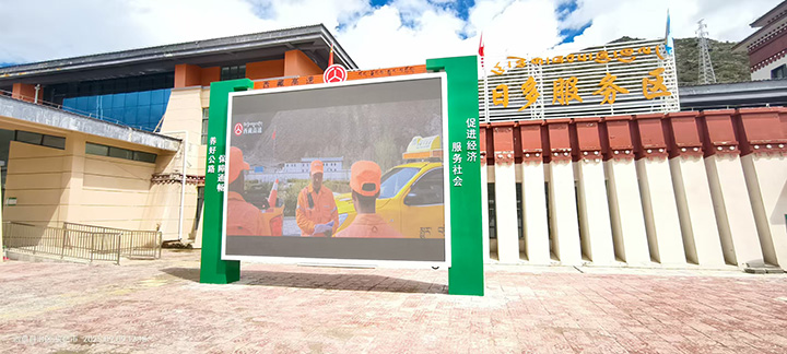 在西藏自治區(qū)成立60周年大慶之際,我司為西藏自治區(qū)交通運輸廳承建,仁布服務區(qū)(單側集中)、那曲服務區(qū)(左幅)、日多服務區(qū)(左右幅)、阿扎服務區(qū)(左右幅)、當雄服務區(qū)(左右幅)共計8塊室外P3高清全彩宣傳大屏。成為西藏公路交通建設,戶外多媒體宣傳的一道亮麗風景線,得到用戶的一致好評,順利通過驗收,投入使用!